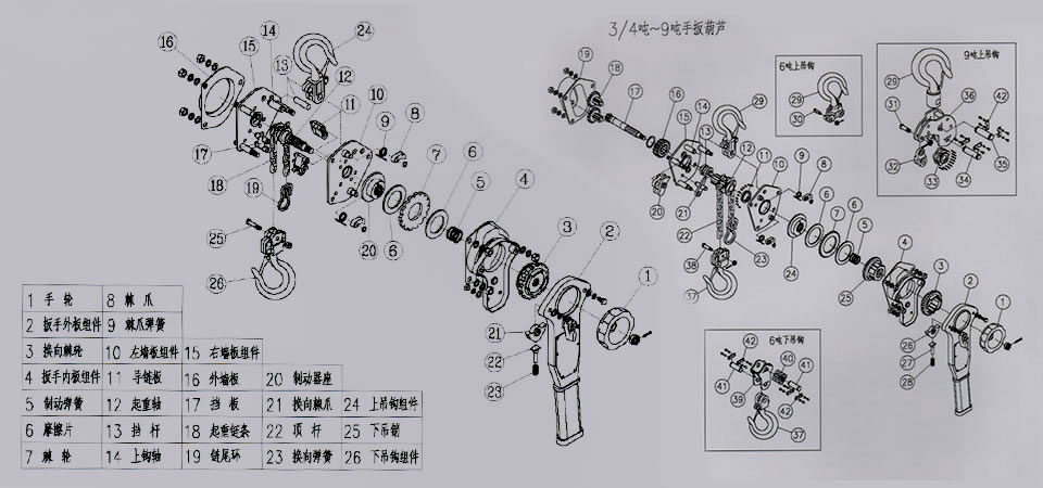 手扳葫蘆被廣泛應(yīng)用于電力線路牽引拉緊作業(yè),在頻繁使用后對(duì)于造成損壞的部件要及時(shí)進(jìn)行更換,以減少對(duì)整機(jī)的影響,當(dāng)然維修手扳葫蘆要有一定的經(jīng)驗(yàn)或送往專(zhuān)門(mén)的檢修部門(mén)進(jìn)行完成。